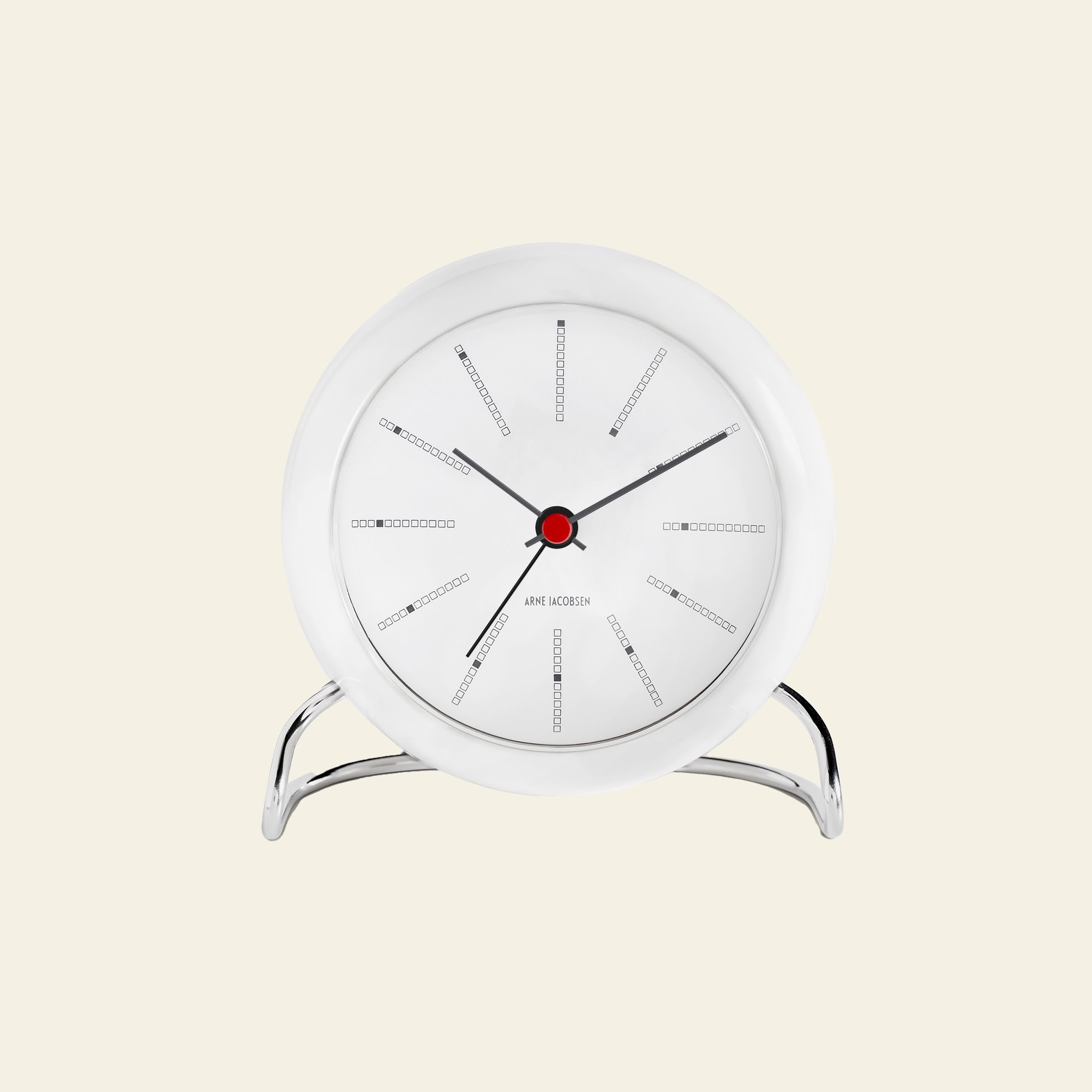 Arne Jacobsen Bankers Table Clock 11cm a minimalist timepiece blending Danish design with modern function.