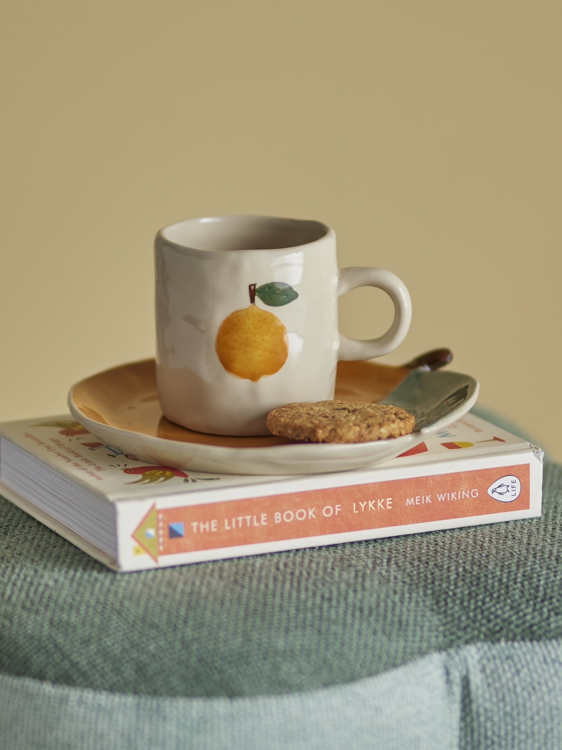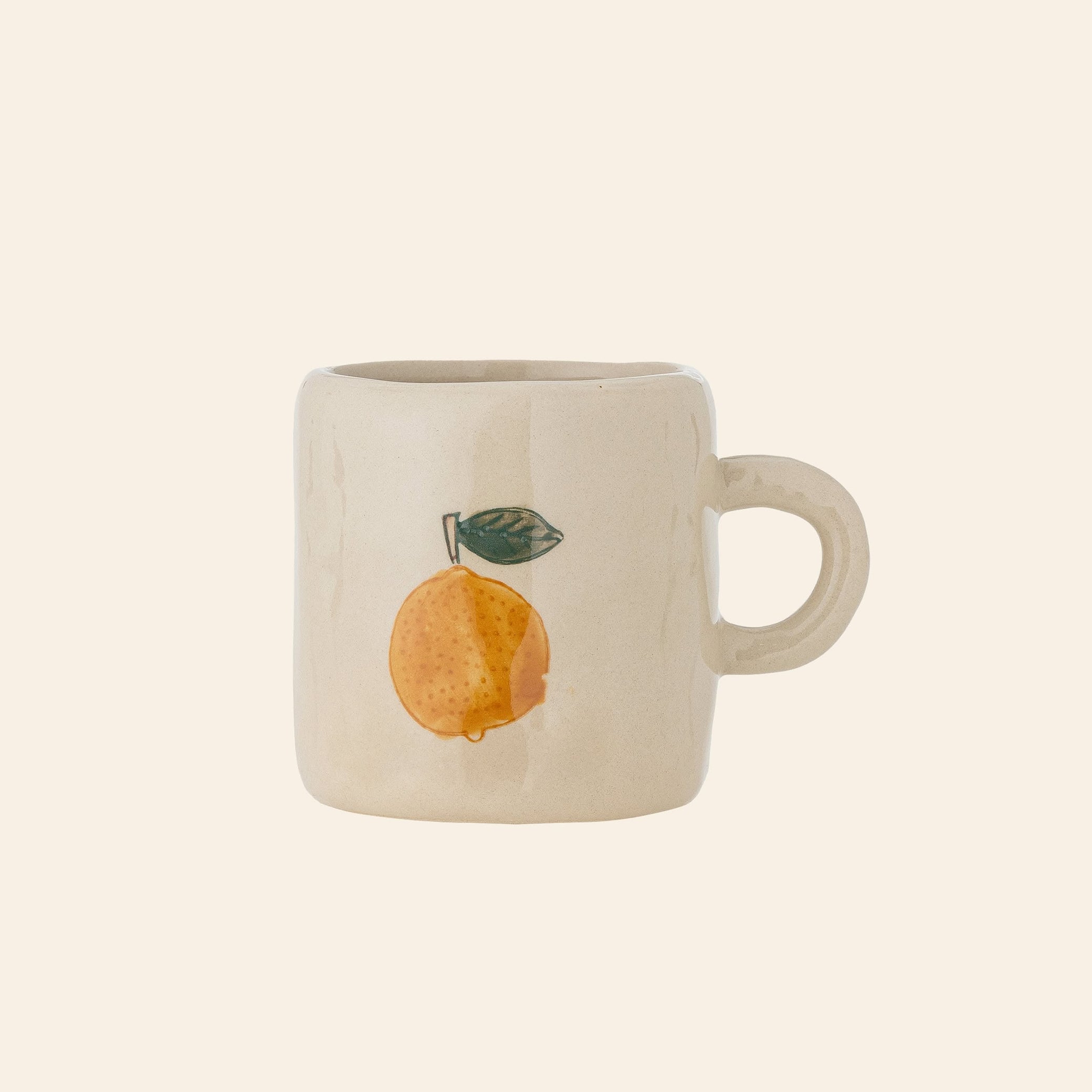 Bloomingville Agnes Cup – Nature – The Agnes Cup from Bloomingville MINI is a charming handmade stoneware cup, adorned with a cute orange detail. A hidden orange at the bottom creates a delightful surprise, while each cup's glaze and hand-painted finish ensure every piece is unique.