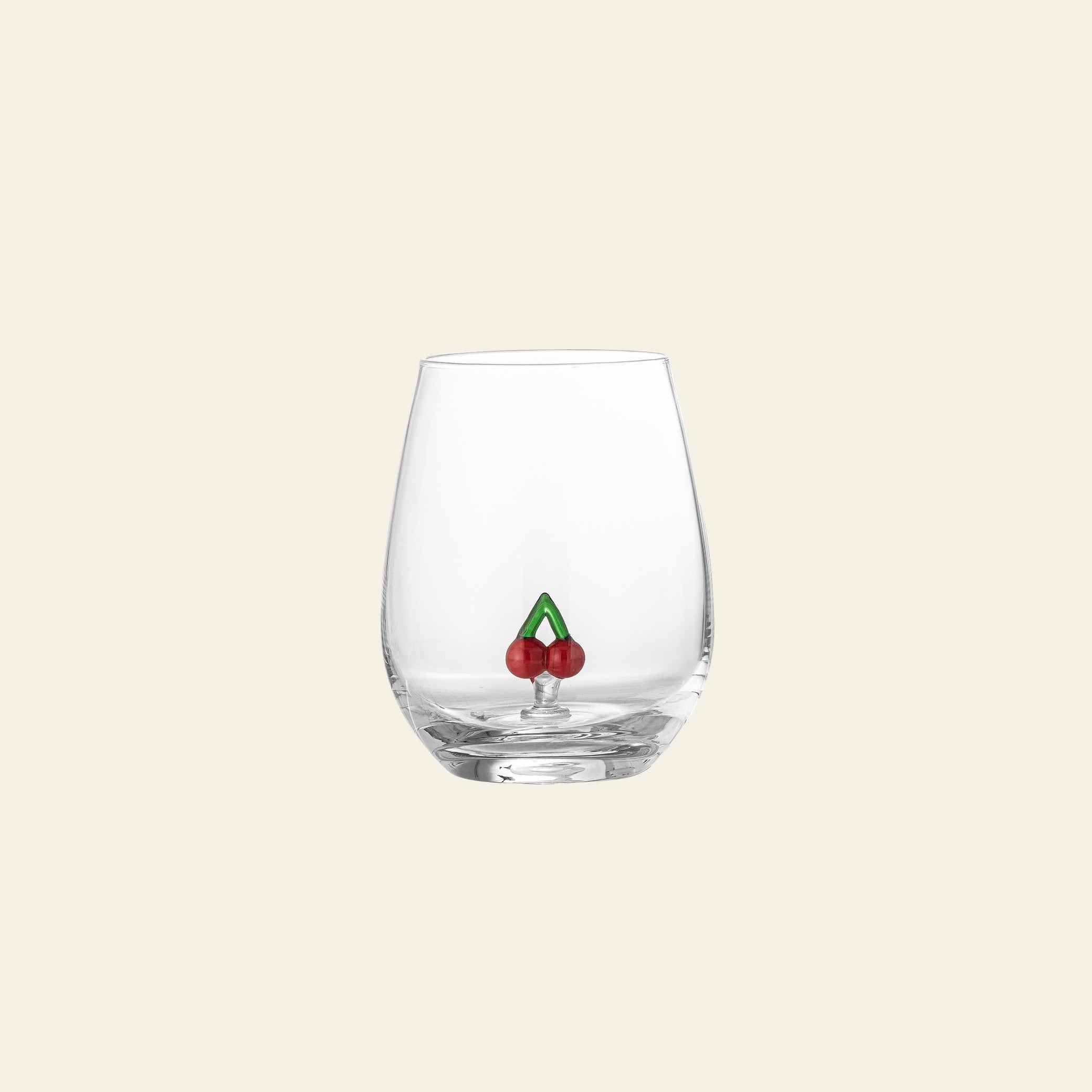 Bloomingville Misa Drinking Glass – a charming hand-blown glass featuring a tiny cherry sculpture at the base, adding a sweet surprise to every sip. Its rounded silhouette and whimsical detail make it perfect for juices, cocktails, or simply brightening up your everyday tableware.