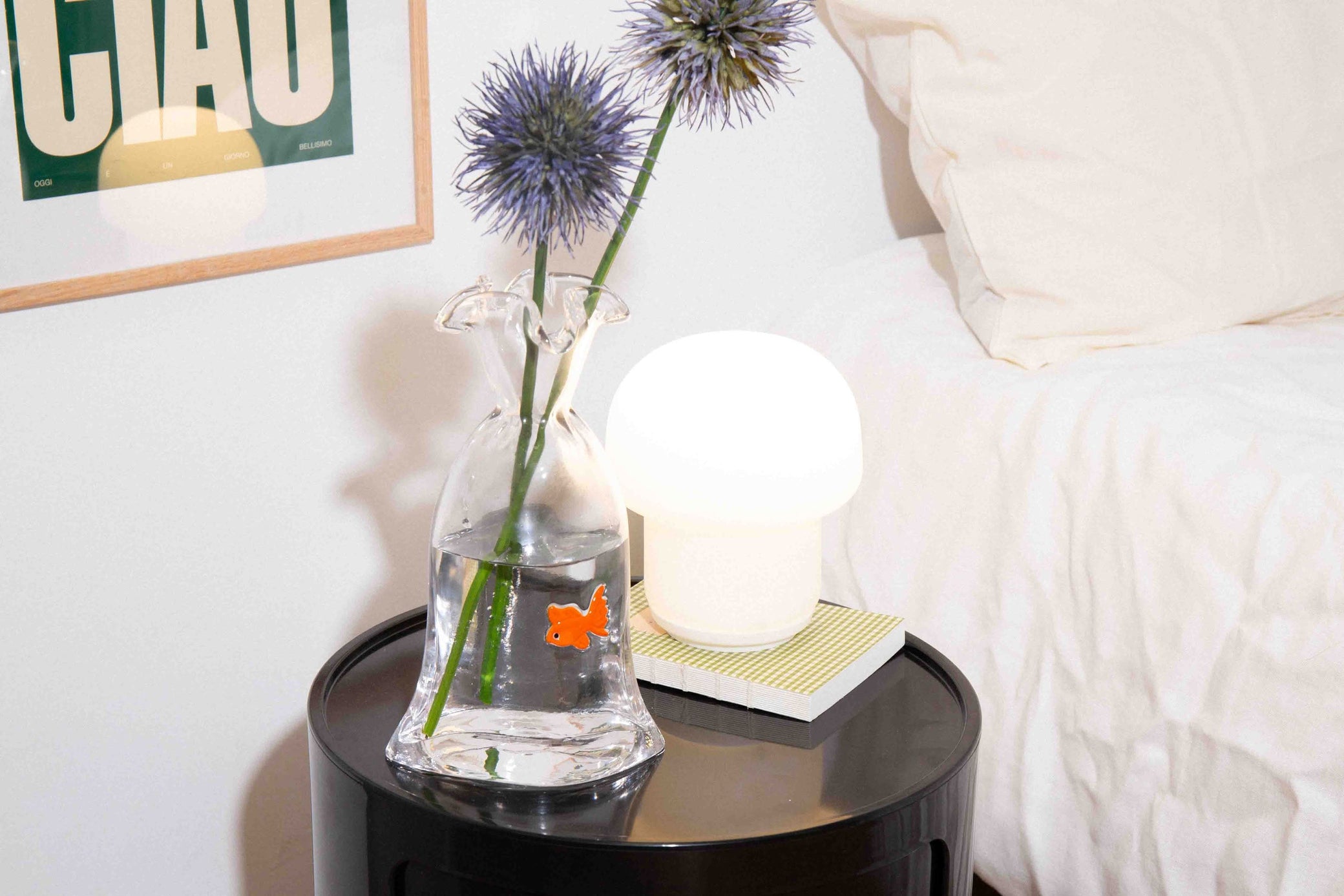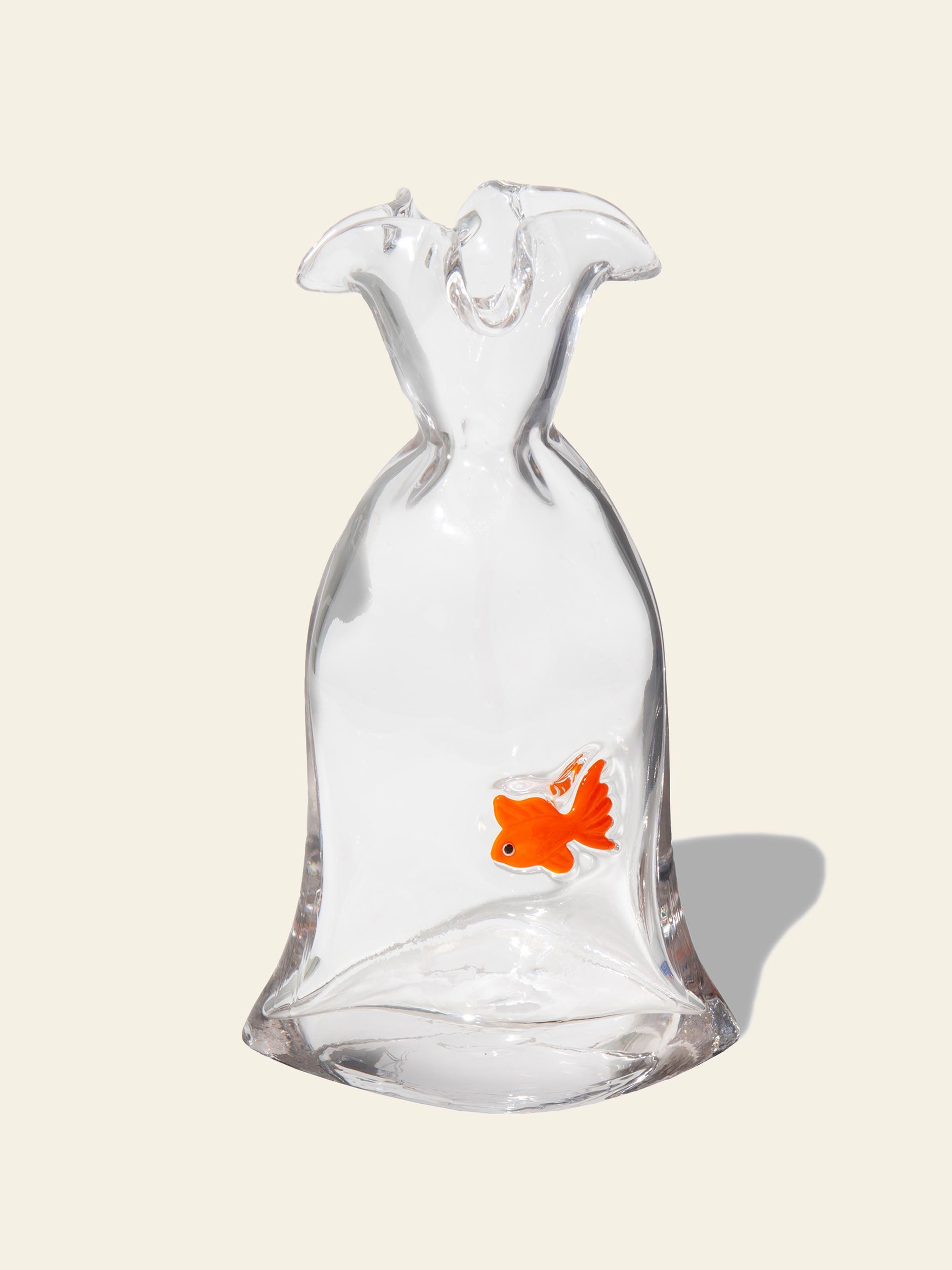 DOIY Goldfish Vase – Bring a playful yet elegant accent to your space with this goldfish-inspired glass vase. Its sculptural silhouette and transparent finish make it a charming decorative piece that adds personality to shelves, tables, or windowsills.