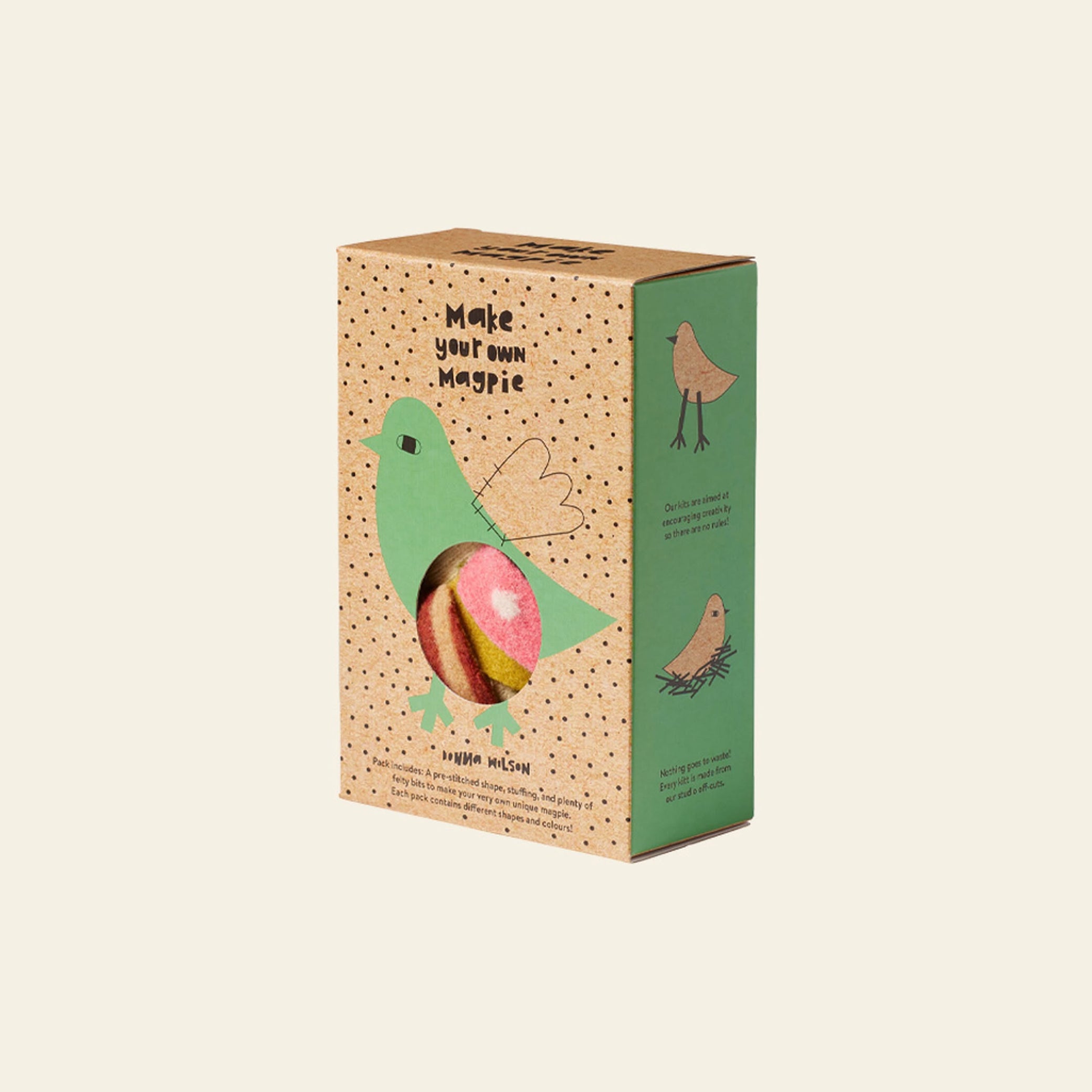 Donna Wilson Make Your Own Magpie Kit – Create your very own feathered friend with this playful DIY kit! Each set includes everything you need to design a one-of-a-kind magpie. Crafted using leftover lambswool offcuts and recycled wool stuffing, this kit combines creativity, sustainability, and a touch of whimsy.