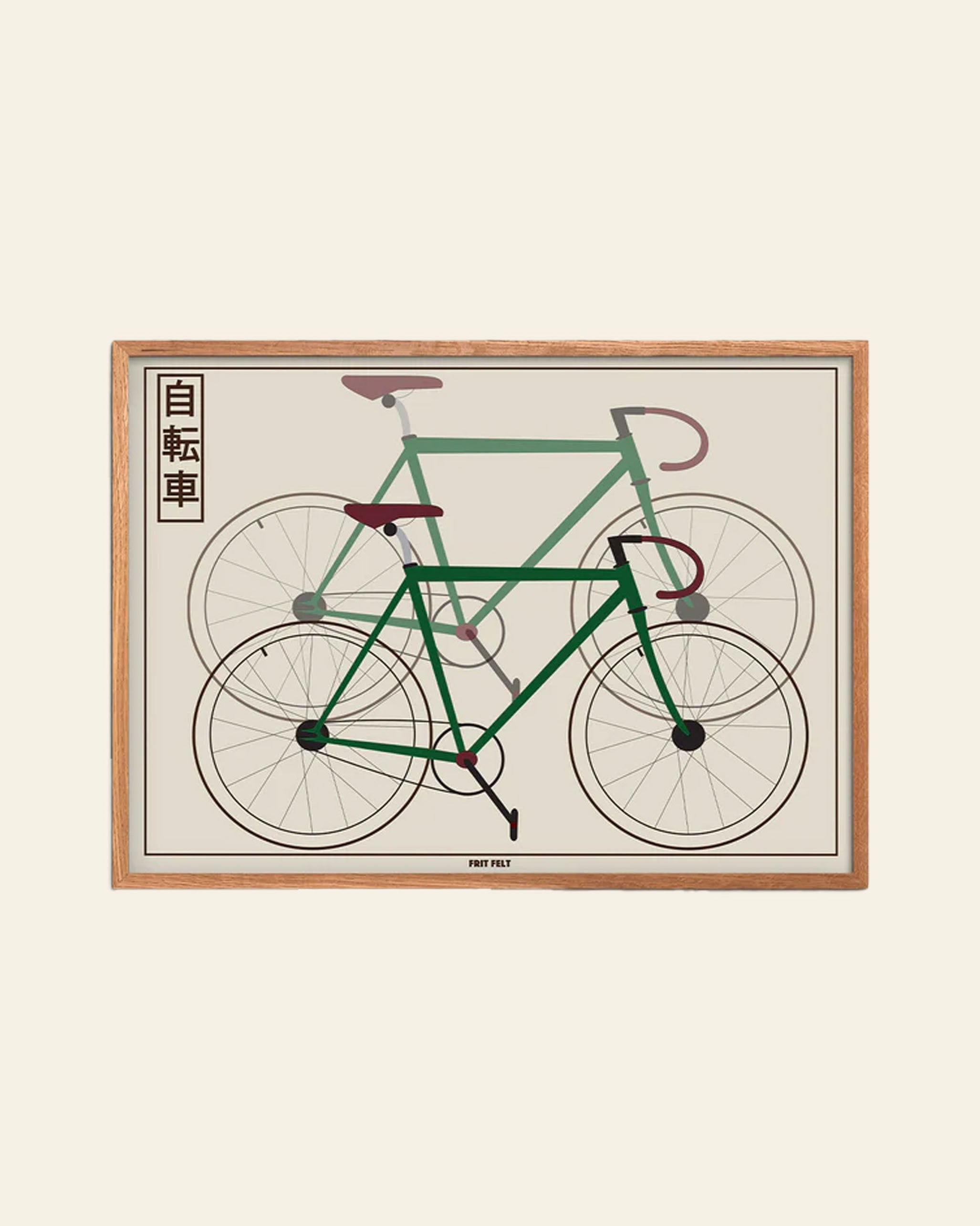 - Design – contemporary print highlighting the charm of a simple green bicycle
