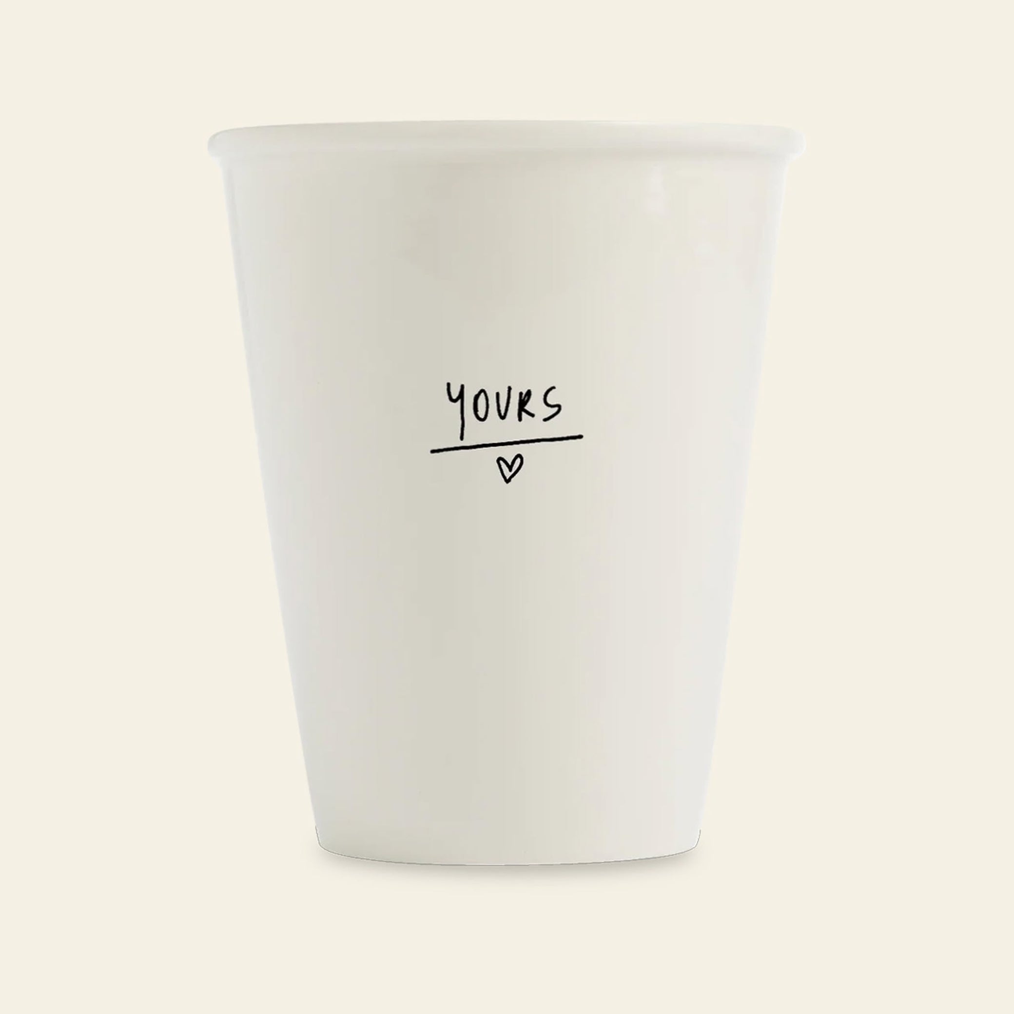 helen b Yours Cup – a playful reminder of who this cup belongs to or who it’s meant for. Featuring helen b’s signature handwritten style and a tiny heart, the Yours Cup brings a personal, heartfelt touch to your daily routine. Perfect as a gift or paired with the “Mine” cup for a meaningful duo.