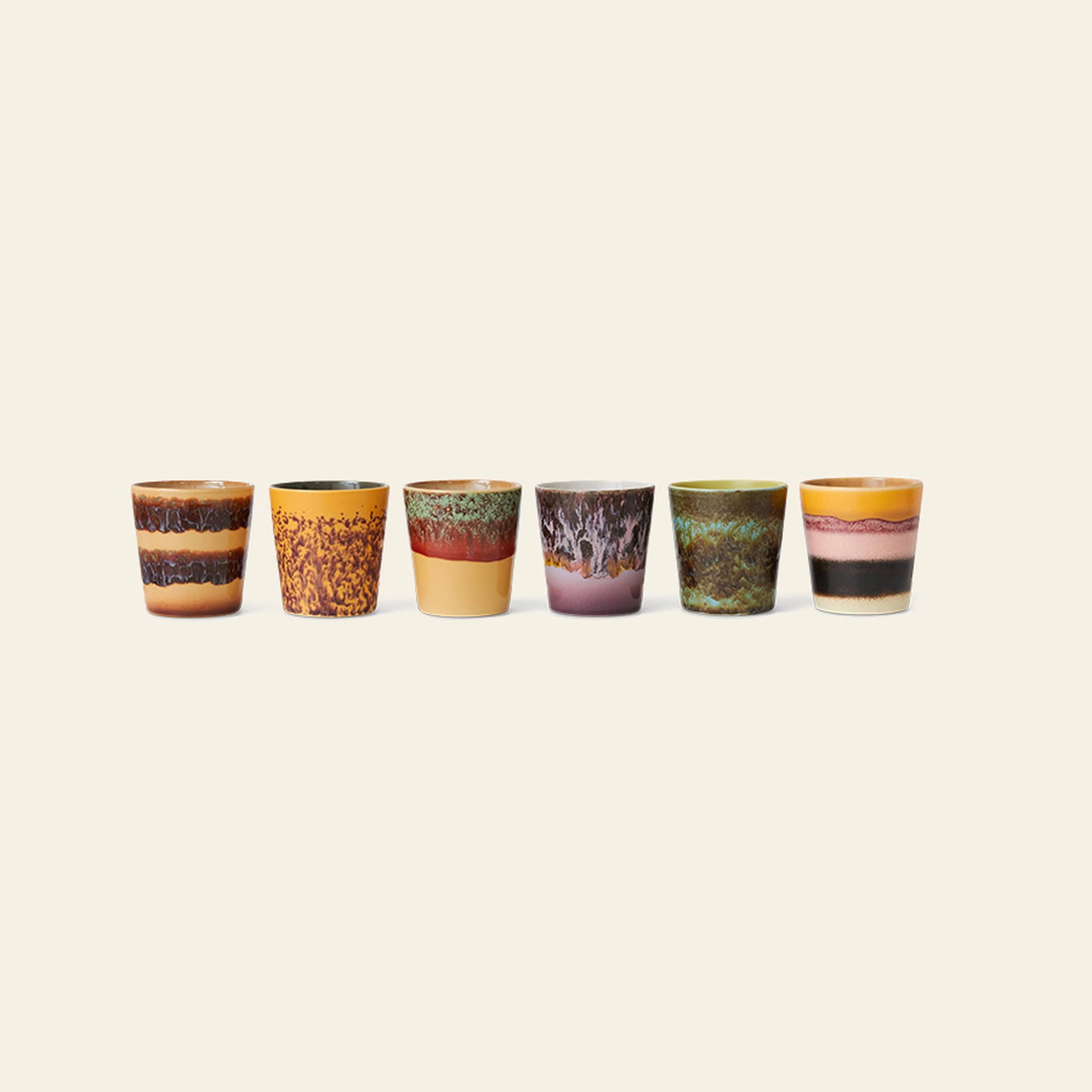HKliving 70s Ceramics: Coffee Mugs, Set of 6 a colourful collection of ceramic mugs that bring retro flair to your daily coffee rituals.
