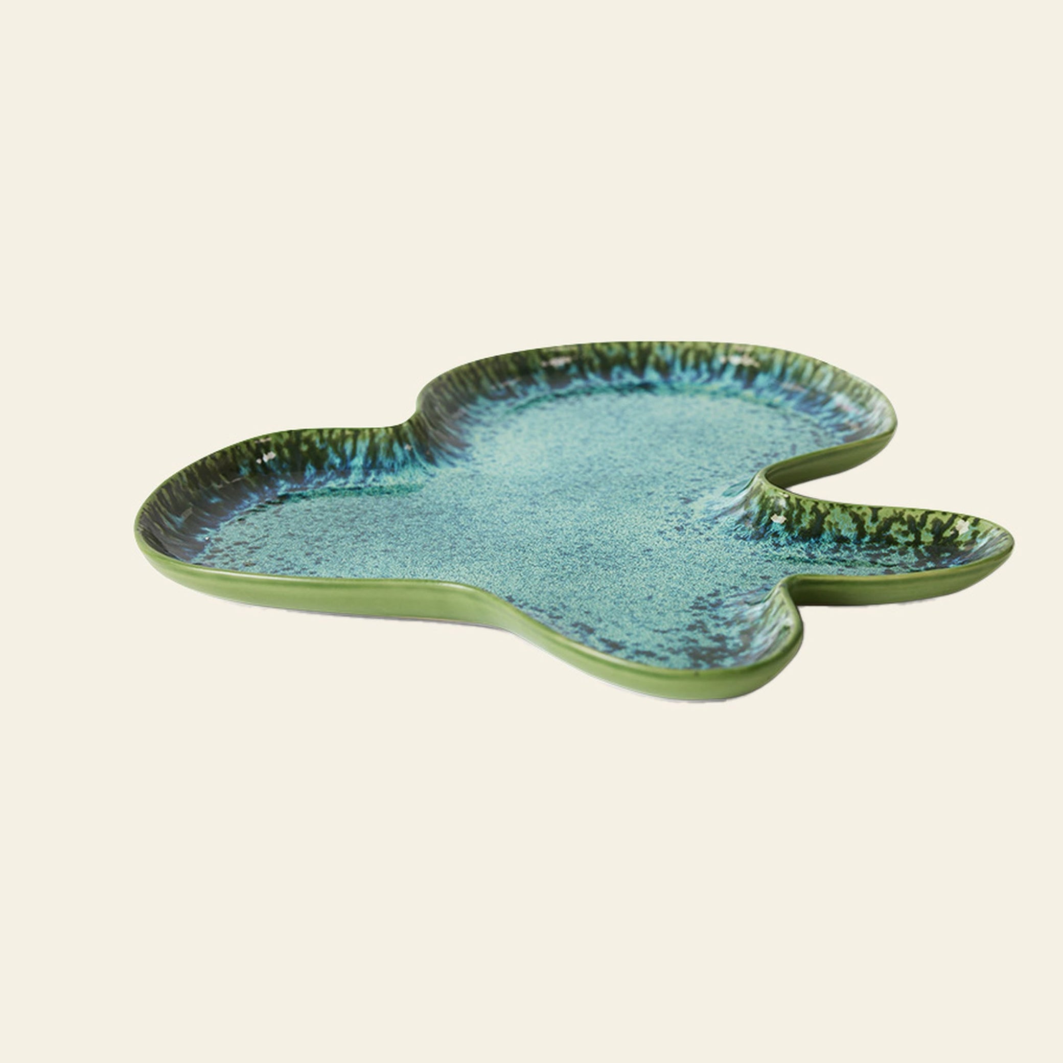 HKLIVING Shell Plate - Teal - part of the shell ceramic tableware collection, this plate is inspired by marine life with organic shapes and intricate patterns that bring natural elegance and artistic charm to your dining experience.