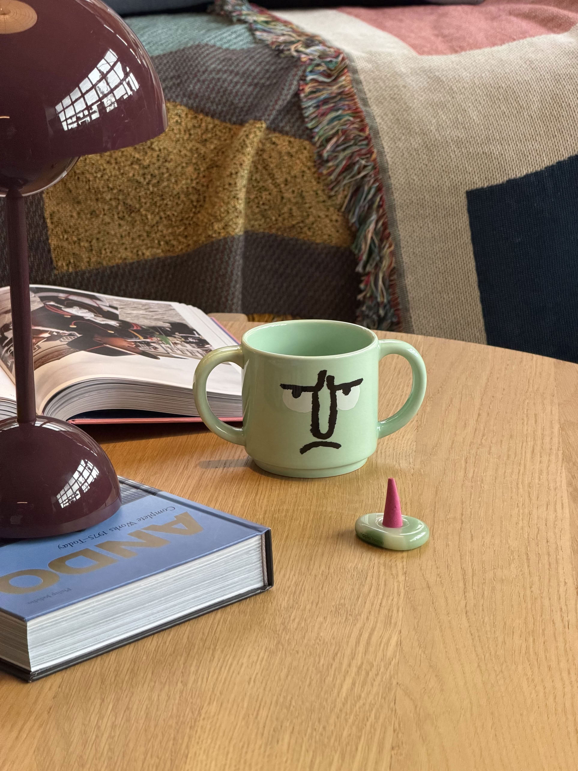 NouNou Double Handle Mug - Mint – a playful yet practical ceramic mug designed with NouNou’s signature facial expression and a refreshing mint gloss finish. Featuring distinctive double ear-shaped handles, this mug offers a comfortable two-handed grip and adds a charming touch to everyday use or display.