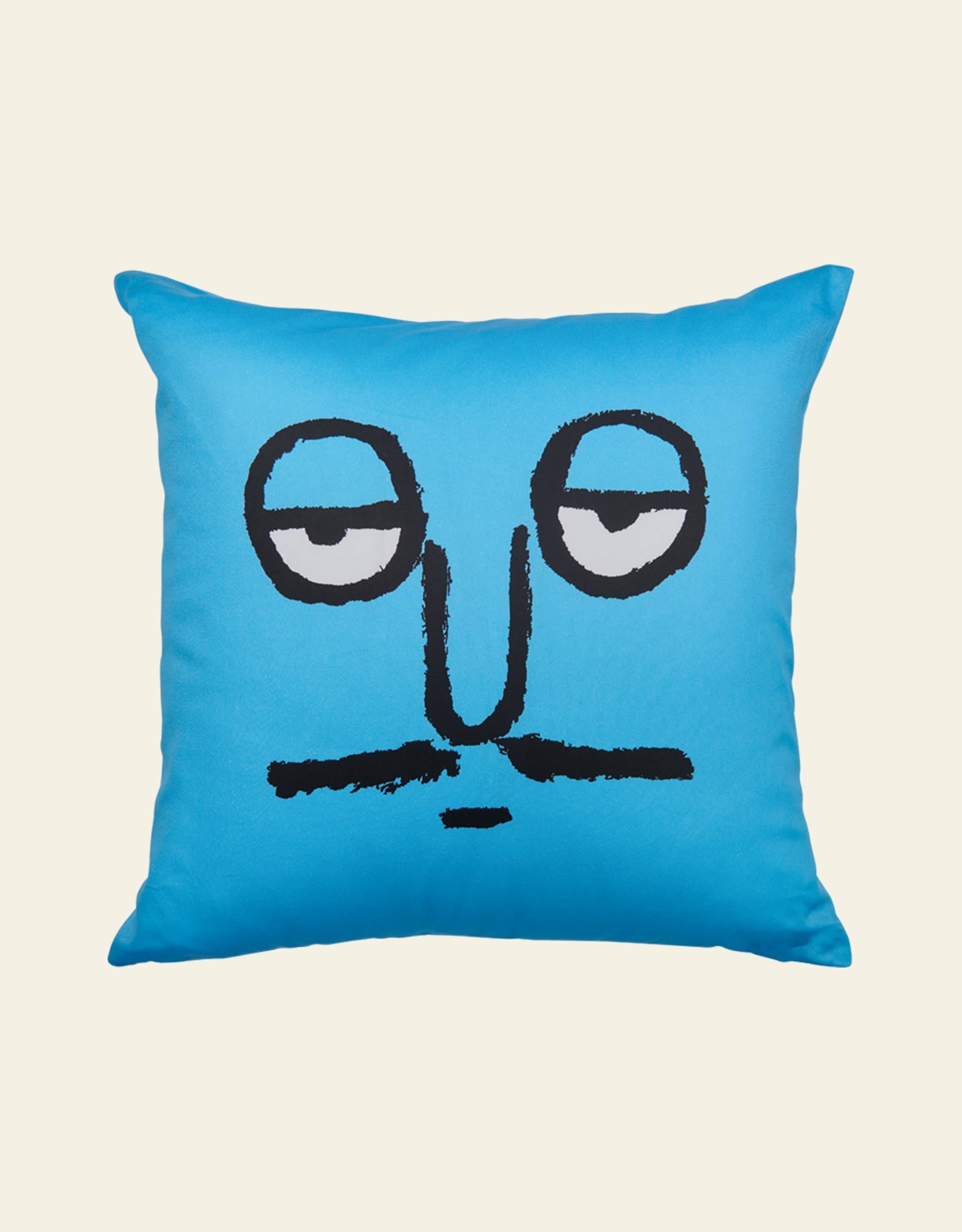 NouNou Jae Cusion Cover - Blue a vibrant blue cushion cover featuring a friendly face that livens up any space.
