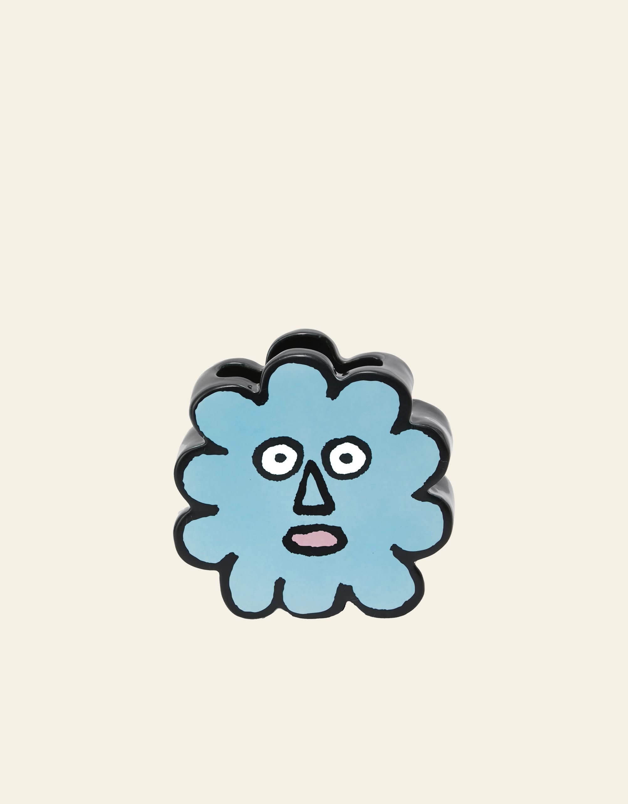 NouNou Tartelette Vase - Blue a two-tone ceramic vase with changing facial expressions and sculptural charm.