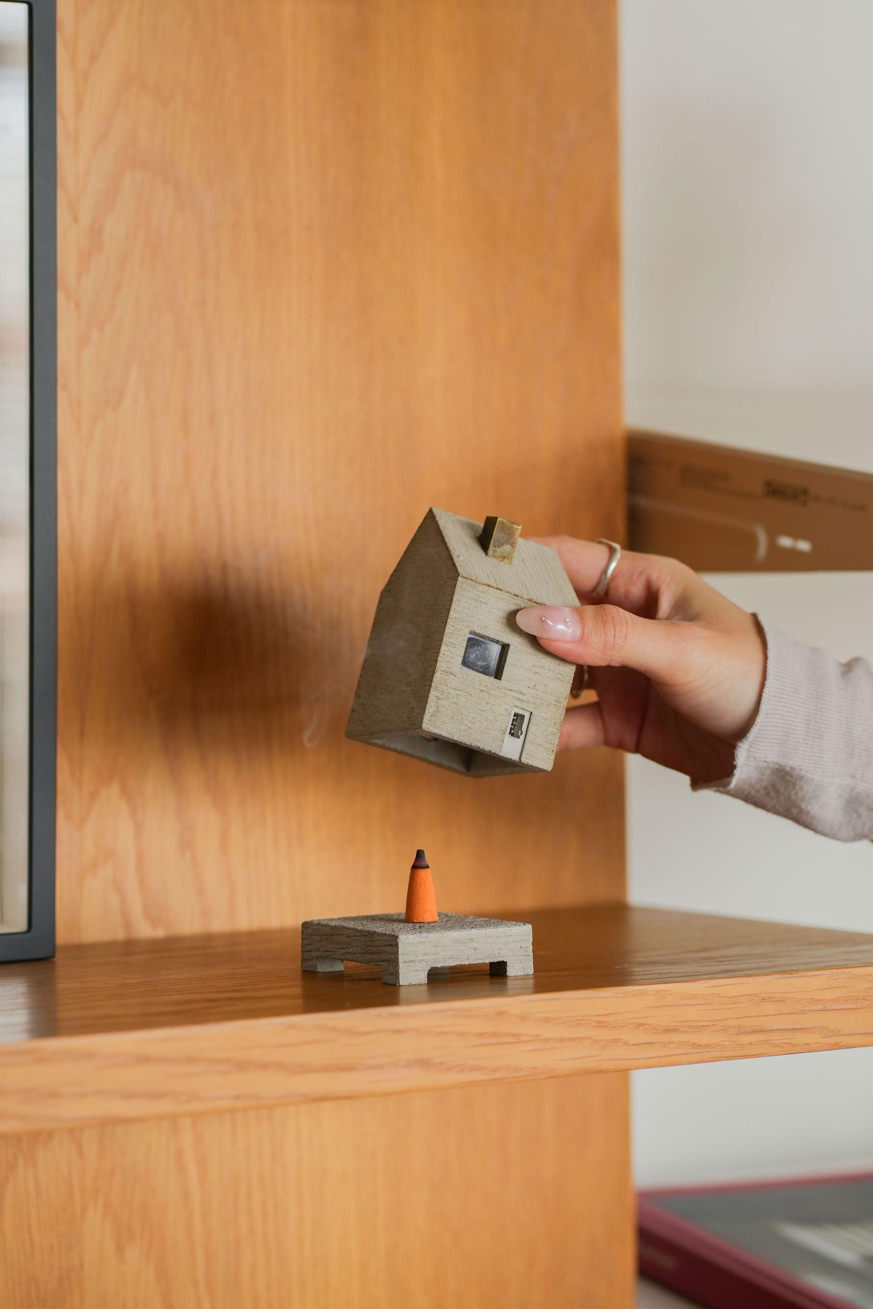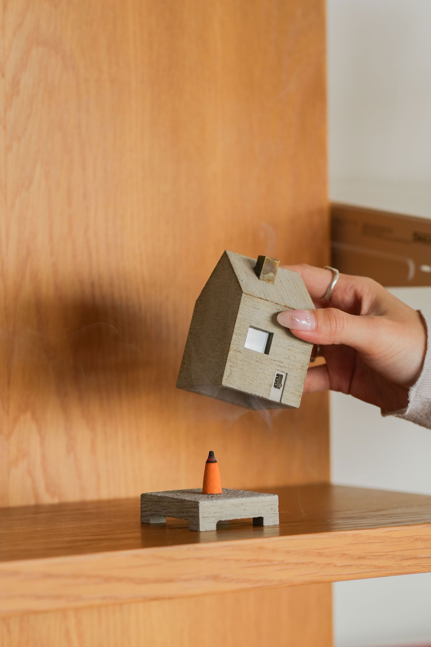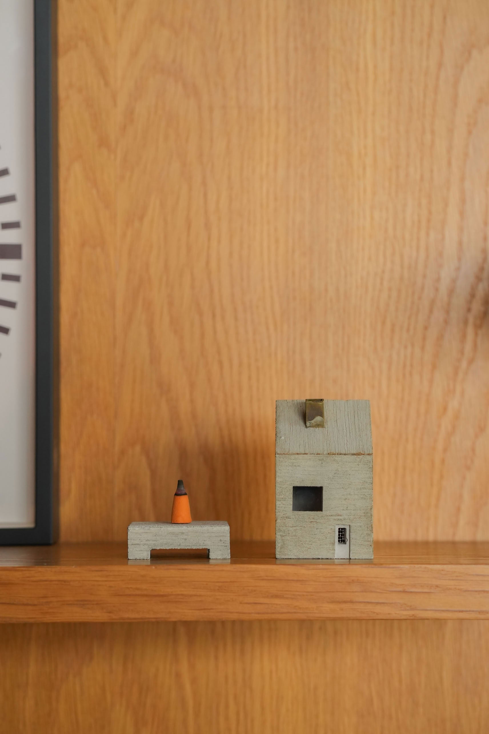 Pull Push Products. House Incense Pot – Natural – A charming house-shaped incense burner crafted from mortar, designed to let incense smoke rise gently through its chimney. Perfect for creating a calm, relaxing atmosphere at the end of the day or during quiet moments at home. When not in use, it also serves as a decorative piece, especially when paired with small accessories to create a streetscape-like display.