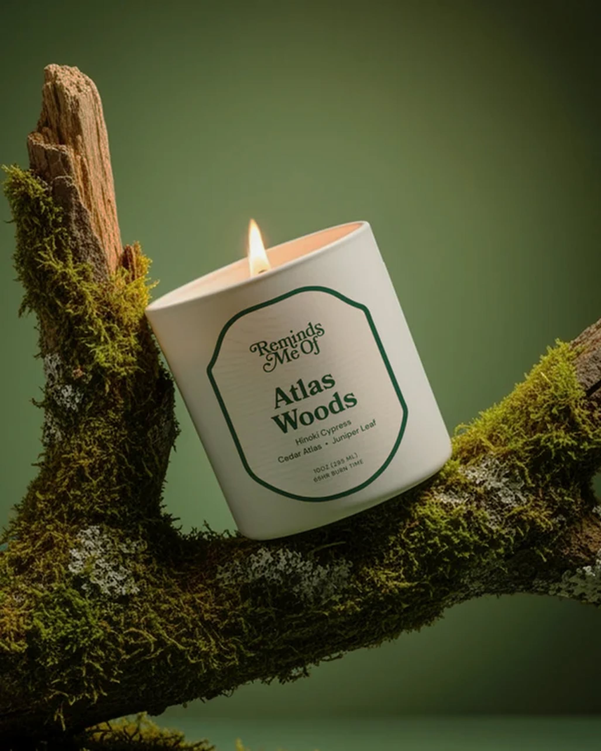 Reminds Me Of Atlas Wood Candle - take a winter walk through a forest of hinoki cypress and atlas cedar, where juniper leaves rustle and crisp pine and ozone notes filter through like sunlight on a serene morning. This woodsy-fresh candle evokes nature’s quiet majesty in every flicker.