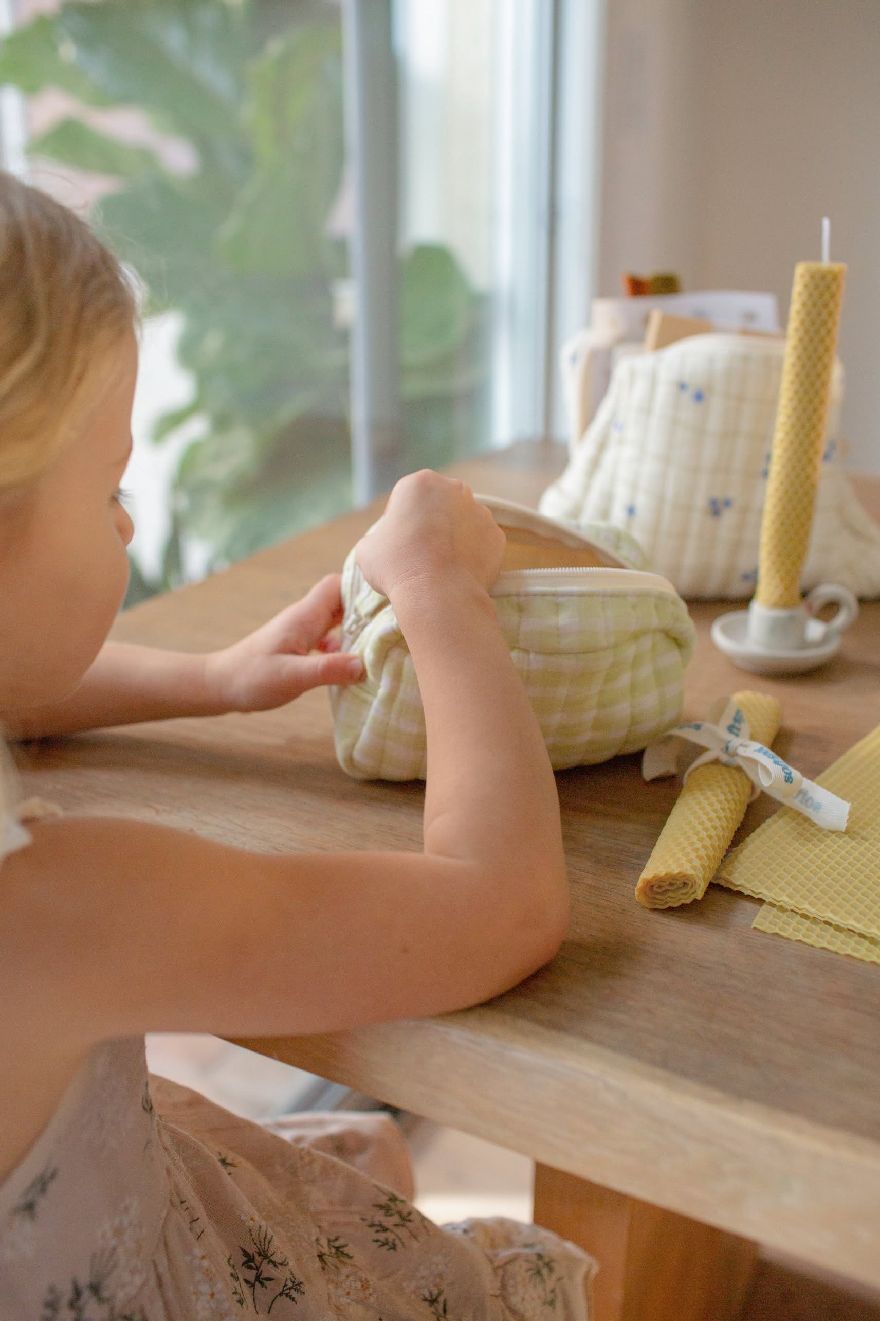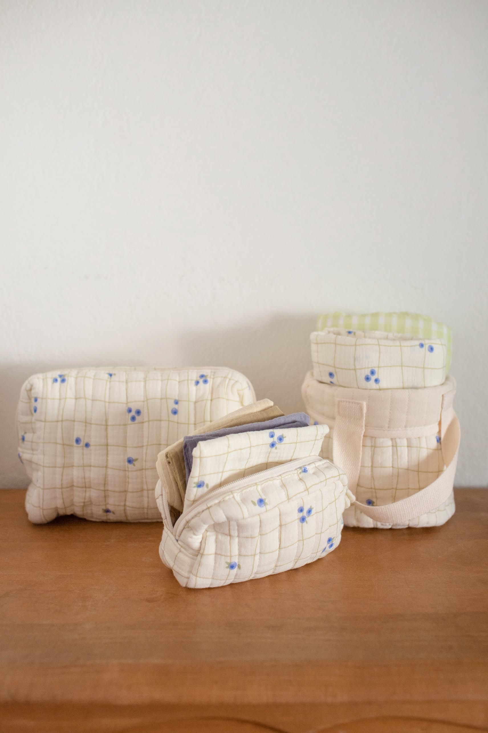 - Design Features – soft quilted feel, flat base for stability, and a cute fabric zip puller