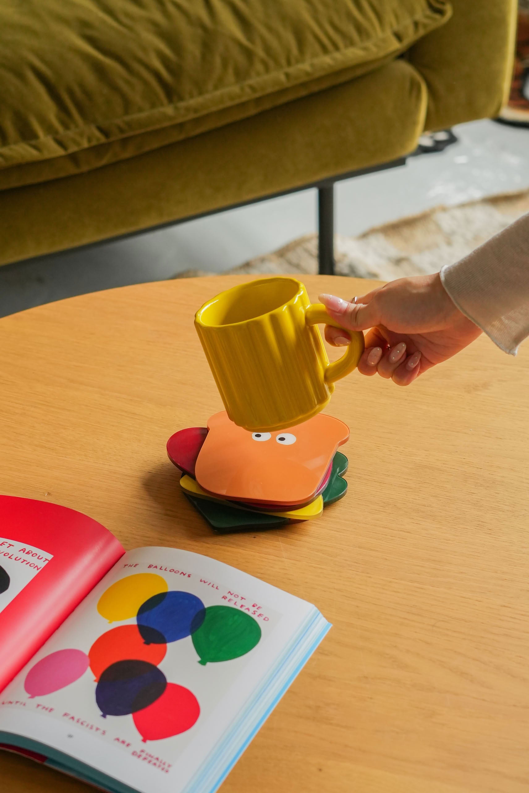 • Functional & decorative – Use them individually as coasters or display them stacked as a quirky tabletop accent.